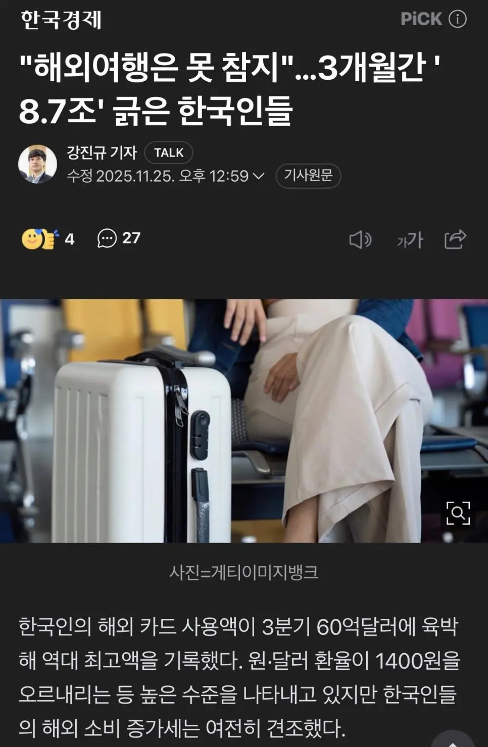 해외여행은 못 참지’ 3개월간 ‘8.7조’ 긁은 한국인들