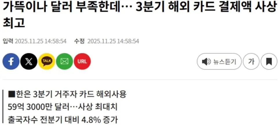 한국인의 해외 카드 사용액이 올 3분기 약 60억달러로 역대 최고액을 기록했다. 1400원 안팎의 원·달러 환율에도 해외 쇼핑과 해외여행 수요가 견조하다는 사실을 보여준다.